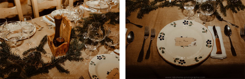 Donc pour ce doux mariage intime, Audrey et Romain avaient privatisé l’hôtel qui était encore fermé au public durant cette intersaison. De plus, ils avaient aussi réservé les chalets du lieu pour pouvoir loger toute leur famille. Une semaine avant Noël, les sapins étaient décorés offrant ainsi une ambiance incroyable ! Un petit matin détente pendant les préparatifs puis direction l’Ermitage de Saint-Germain à Talloires pour la cérémonie, en haut du lac d’Annecy. C’est un lieu qui offre une vue superbe sur le lac et les montagnes des Bauges ! Enfin, retour aux chalets du Col de la Croix Fry à Manigod pour un goûter au chaud. Ensuite les mariés avaient laissé un temps libre à leurs proches pour qu’ils puissent se relaxer et profiter des jacuzzis avant l’apéro et le dîner. Autant vous dire que les invités ont passé un week-end de rêve à la montagne !