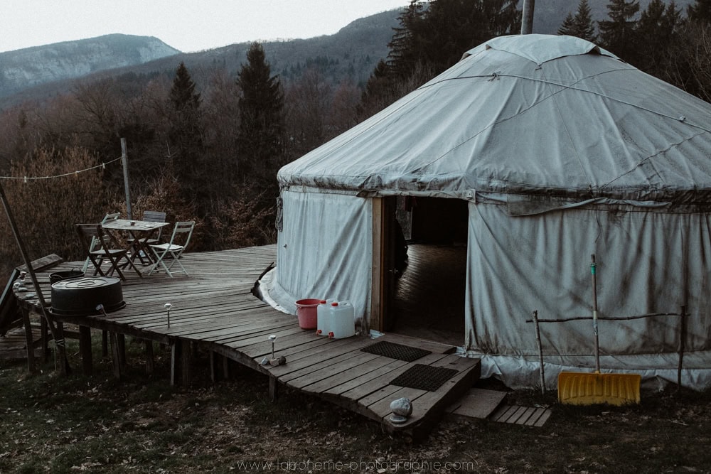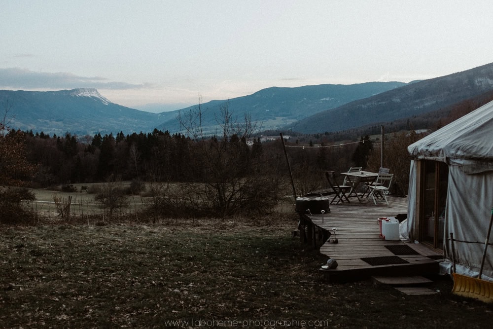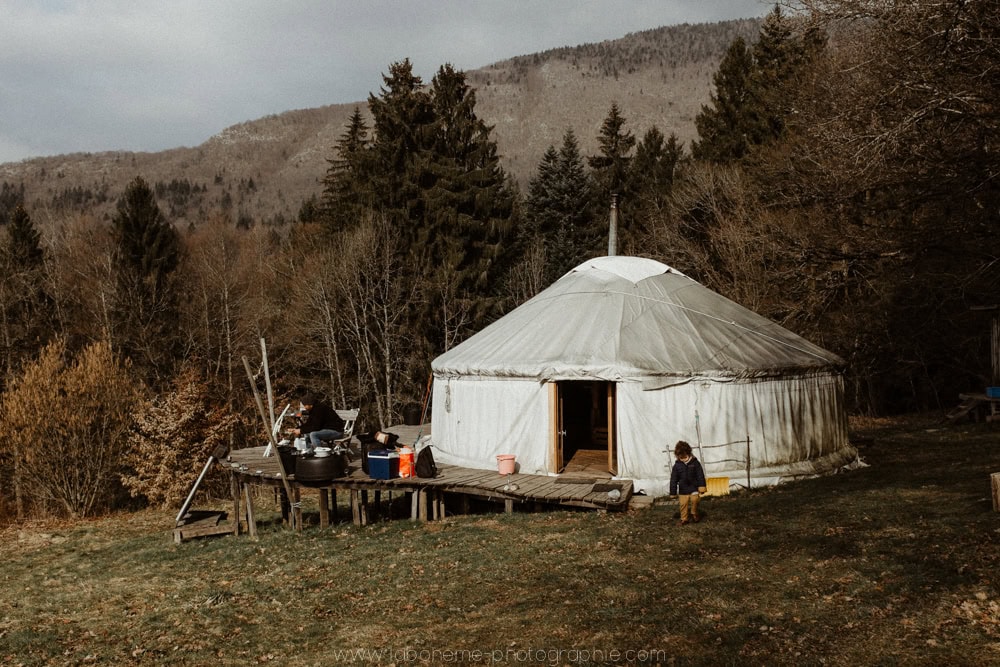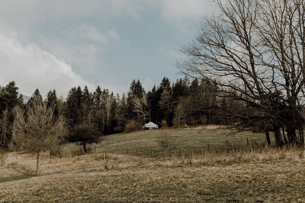 Avant de reprendre pleinement la saison des mariages et de travailler chaque fin de semaine, j’ai souhaité surprendre mes proches avec un week-end en famille dans les Bauges. J’ai réservé une nuit dans une yourte, en Savoie, dans le massif des Bauges, précisément à Bellecombe-en-Bauge !