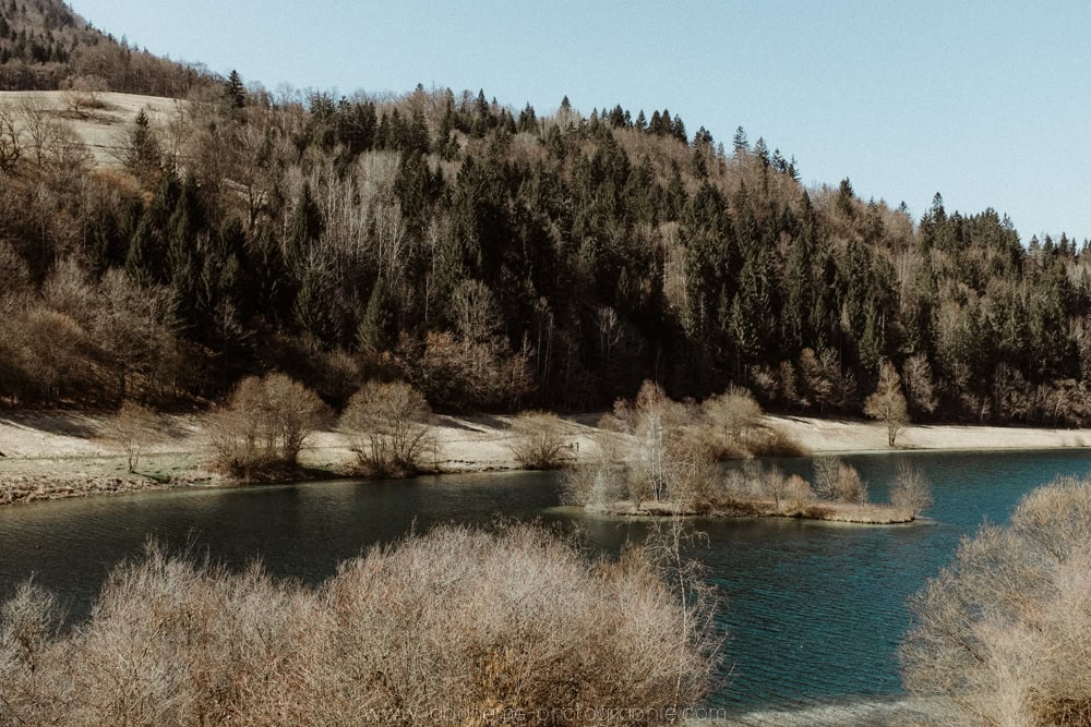 Mes filles ont depuis longtemps un livre qui raconte l’histoire du petit Jilù, bébé Mongol, qui vit avec sa famille dans une yourte. De ce fait, j’ai pensé que vivre cette expérience pourrait leur parler. Du fait que faire l’expérience d’une soirée sans électricité et loin de tout pouvait être enrichissant pour notre famille. Du coup, avant de rejoindre la yourte, on a profité du beau temps pour faire un pique-nique devant le petit lac du Châtelard, face aux sapins et aux montagnes !